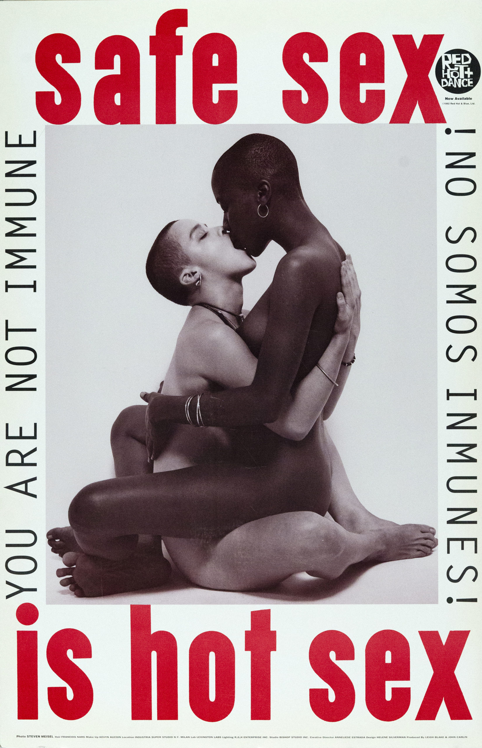 Created by Red Hot, a New York-based organization formed in 1989 dedicated to HIV/AIDS awareness and education, and Steven Miesel, a well-known fashion photographer, these posters render safe sex as both erotic and normal. Forgoing traditional public health messaging techniques in and around HIV/AIDS that often resisted explicit sexual representations, these posters illustrate how collaborations between HIV/AIDS organizations and figures from pop culture can create counter-modes of educating a public about HIV/AIDS. The images, while provocative, aim to educate viewers, who are presumed to be biracial gay men and women, with a simple message: safe sex is hot sex.